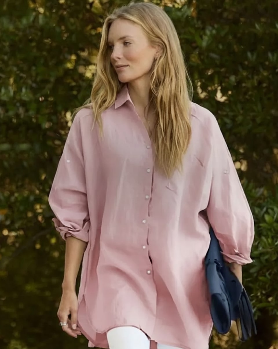 This blouse is everything I hoped it would be and more. The linen feels incredibly light and breathable, but still has that rich, textured quality that makes it feel elevated. I’m 38.5" bust, 32" waist, and 36" hips, and the size L fits perfectly.