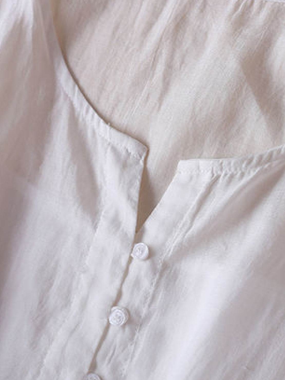 Cotton linen naturally develops some wrinkles with wear, which is part of the fabric's character. A light iron on medium heat will remove deeper creases if preferred. Most customers wear it with minimal pressing.