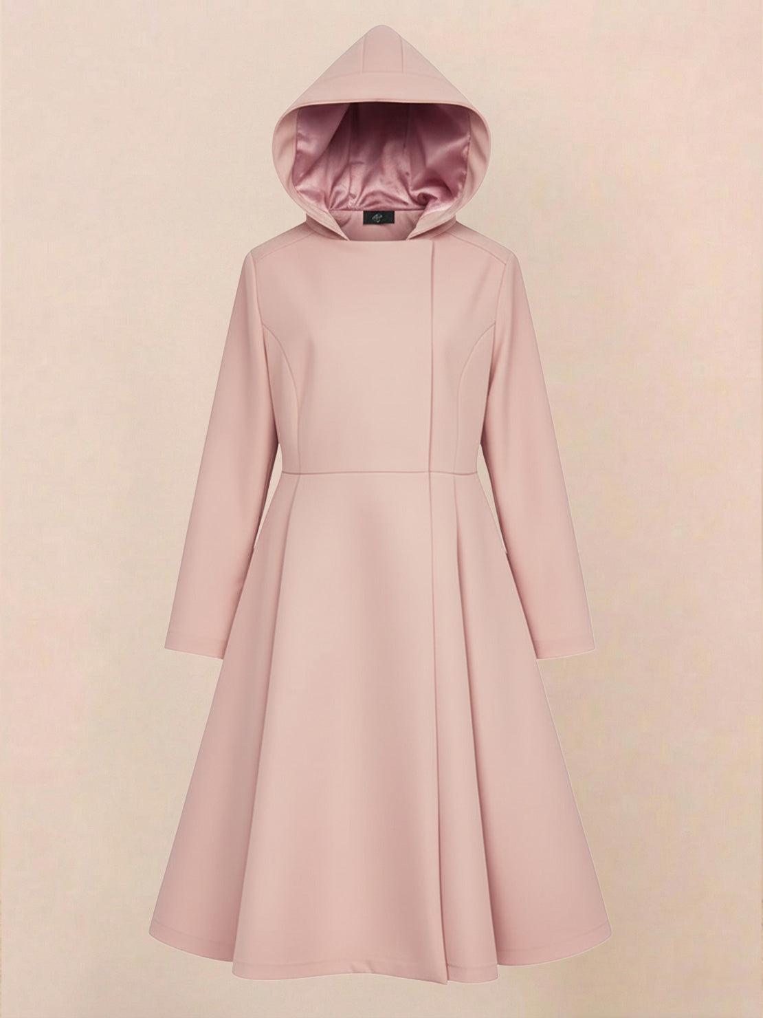 Style Note: Elegant A-line raincoat with hood and matching belt. It looks like a dress, performs like a raincoat. Designed for effortless elegance, rain or shine